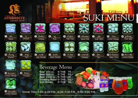 ショーの前後に追加にてビュッフェ形式のタイスキを召し上がることも可能です。(飲み物は別)