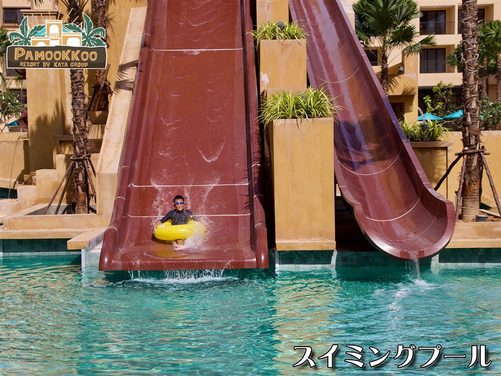 このホテルのコンセプトプーケット島内ではあまり見かけないは"ジャングルリゾート"であり、建物の雰囲気やデザインはもちろんのこと、スタッフの衣装やホテル内の調度品など至る所にジャングルリゾートのテイストが感じられます。また、このリゾートホテルの一番のセールスポイントは建物中心にあるアドベンチャープールであり、大人用およびお子様用の合わせた5カ所のスイミンプールの中に、スリル満点の約4階建ての高さから滑るウォータースライダーやお子様が安全に楽しめるウォータースライダーなど合計4台のスライダーが用意されております。つまり、近くのビーチへ向かわわなくとも、アドベンチャープールでたっぷりと遊ぶことができます。