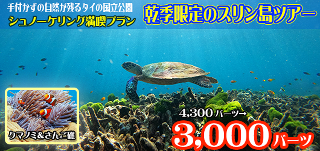 スリン諸島周辺のシュノーケリングポイントを満喫できるツアーが始まりました。
