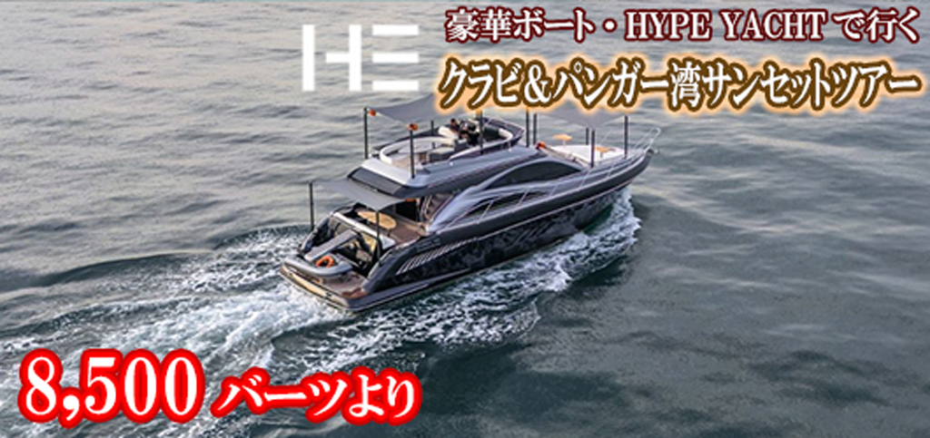 ラグジュアリーボート HYPE BOATでゆく クラビ&パンガー湾サンセットツアー |