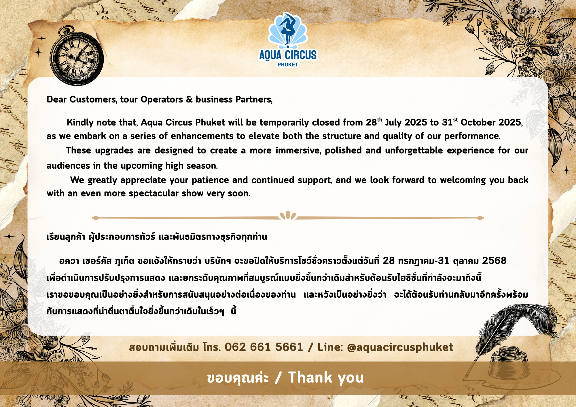 こんにちわ プーケット旅行センターです。 今回は2025年05月上旬にオープンした新しいエンターテイメント施設・アクアサーカス プーケット ( Aqua Circus Phuket )ですが、色々な要因により7月28日~