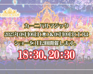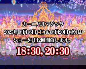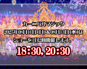 こんにちわ プーケット旅行センターです。 今回はカーニバルマジックの追加公演についてお知らせします。 カーニバルマジックは、アメリカの有名なニュース雑誌であるTIMEにて2023年度の世界のおすすめスポット50選にも選出