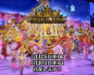 人気のカーニバルマジックですが、通常木曜日はお休みですが、 2025年12月25日(木)、2026年01月01日(木)はオープンします。 カーニバルマジックの詳細はこちらより お申し込みの際は、お気軽にご連絡ください。