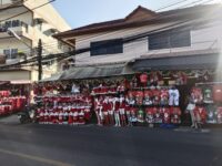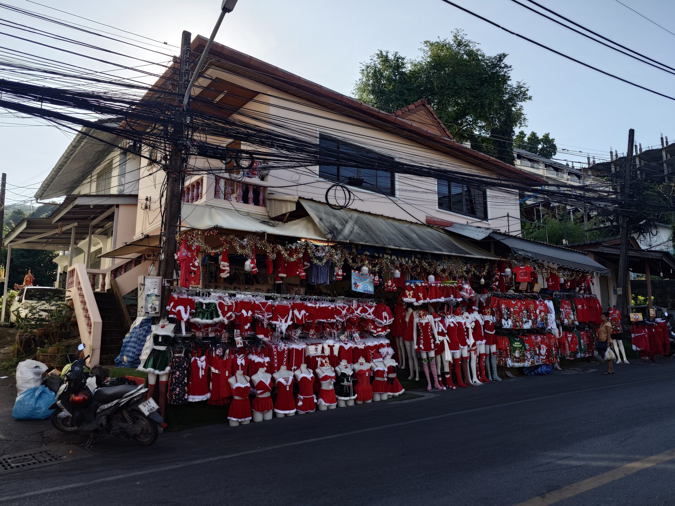 クリスマスが近くなるとサイナムエン通りのバーガール用の洋服を販売しているブティックが御覧のように一気にクリスマスカラーに変わります。(多分明日までかな?)