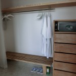 BayRoomは ポイント ヤム バイ コモ( Point Yamu By Como )のボトムの部屋タイプであり、スタジオタイプ(リビングがないワンルーム)の造りとなっております。ドアを入ると右側に手のひらをかたどった洋服賭けが3つ並んでおり、左側にはクローゼットが配されています。エントランス正面先がバスルーム、右側がベッドルームでありL字型のレイアウトとなっております。