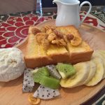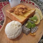 以前本ブログにて紹介した パトンビーチのローカルカフェ・iBreeq coffeeですが、ハニートーストなどのスイーツも充実しています。写真のものはLight Honey Toast ・119バーツ 。これは厚めに切られたトーストの上にシリアルとナッツがちりばめられており、周辺には3種類程度のフルーツとアイスクリーム1スクープのセット。ちなみにアイスクリームはタイ国内では比較的高級アイスとして知られているeteを使用しており、バニラやチョコレート、ストロベリーなどの数種類の中から1種類をチョイスできます。ちなみに写真のもの以外にもスイーツ用のトーストは数種類あります。コーヒーブレイクの際、ちょっとおしゃれなスイーツを味わいたいお客様に如何でしょうか?