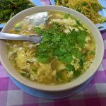 さて、気になる料理ですが、ここでは必ずお店自慢の手作り餃子をオーダーしてください(焼き餃子、水餃子のどちらでも構いません)。豚肉がたっぷりと入った手作り餃子は、水餃子や焼き餃子にしても美味しく、口に入れた瞬間にあふれ出す肉汁のものはパトン界隈にて味わうことが出来ないでしょう。また、豚肉のうまみをたっぷりと吸った茄子の炒め物もお勧めです。これ以外にも、日本人におなじみの辛さの強い麻婆豆腐やシンプルな味付けの炒飯、トマトが入った卵とじスープなどもあり、どれも1品100~150バーツ程度で味わうことが出来ます。