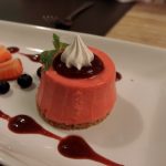 ワイルドベリーの甘酸っぱいチーズケーキとストロベリーのシャーベットです。デコレーションも可愛く、女性のお客様が喜びそうな品でした。