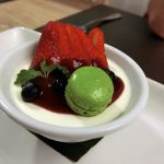 ストロベリーのエキスがたっぷりと凝縮されたソースとミルクの味がしっかりと感じられるパンナコッタでした。ストロベリーソースは見た目ほど甘くなく、お腹がいっぱいでもさらっと食べれる、あっさりとした味でした。