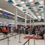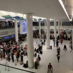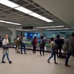到着時の荷物受け取り後、看板の指示に従って移動します。建物内のスペースを仕切る自動ドア( ここまでにツアーカウンターやレンタカー会社があります。)を出ます。その後に銀行の換金所、SIMカード販売所、有料荷物預け所があるホールを過ぎ、1番ゲートを通過するとお迎えの運転手が待機しているミーティングポイントが広がります。(建物を出たあと、再度建物内に入るには荷物の危険物探知機が設置されている2番ゲートを抜ける必要があります。)