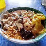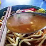 しかしながら実際に食べてみると、ここの福建麺はかなりレベルが高いなかなかのもの。今回オーダーしたものはスープありの福建麺(45バーツ)とスープなしの福建麺(45バーツ)の2種類。両方とも魚の肉団子や豚肉入りのワンタン、かまぼこや小エビ、チャーシューのスライス等がどんぶりの上にはみ出るほど盛られおり、その下に海老のエキスがたっぷりと含んだスープの中にプーケットスタイルの食べ応えのある太い麺が隠れています。他店にはないボリューム感があり、安くてうまいという地元の人たちに愛されているレストランだということがわかりました。