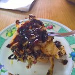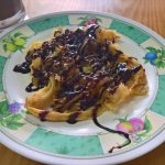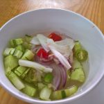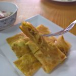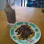 今回オーダーしたものはチョコレートのロティ(メニューRT7 / 30バーツ)とチキンマタバロティ(メニューRT8 / 35バーツ)そしてアイスココア(メニューBR17 / 25バーツ)の3品。チョコレートのロティはパトンビーチで見かけるものとは異なり、ロティの生地を一口より少し大きなサイズで焼き上げ、チョコレートをかけたものであり、サクサクとした食感とチョコレート甘さがちょうど良い風味でした。チキンマタバロティはカレー風味の鶏肉のミンチ&たまねぎなどの野菜をロティ生地に包んで焼き上げたもの。付け合せの酢漬けの野菜と一緒に食べるとサッパリとした味わいが楽しめます。また、アイスココアはホイップ状の泡がコップからはみ出ており、ストロー付近までこの泡がついている独特のもの。