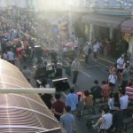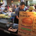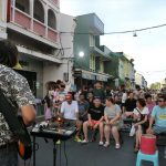 道路の両端にはシノポルトギース様式の2階建てのカラフルなタウンハウスが連なり、約350メートル程の長さの間にはタイ料理の露店は勿論の事、ポートレートを描くアーティストやなぜか鮭弁当の露店、たこ焼きやハンバーガーの新旧様々の出店があります。その中にギター片手に英語や中国語の歌を披露する歌手や、自身のサックス演奏を披露するアーティストなどのストリートステージも確保されており、アーティストの前には長いすも設置されているので、露店で購入した食事を味わいながらの音楽鑑賞も楽しめます。