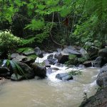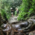 レベル2をさらに進むと悪い岩場が続きます。足場は滑りやすい状況となるため、シューズはトレッキングシューズやトレイルシューズなどを履いて向かうことをお勧めします。(岩場はコケが生えているため、滑りやすくなっているので、足元をよく注意して登りましょう) 先へすすむと徐々に滝のような雰囲気になり、目の前には人が水浴びを出来るサイズの滝つぼが広がります。