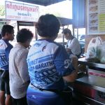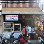 ムーコーブ・ジーホン ( Moo Krob Ji Hong / ร้านหมูกรอบจี้ฮ้อง ) はプーケットタウンのはずれ・Songkram Road沿いにあるローカルレストランです。飾り気のない店構えにはガラスケースないにムーコーブ(豚バラ肉をローストしたもの)、ムーデーン(焼豚)、ガイヤーン(鶏肉のバーベキュー)がトレーの上に雑多に積まれております。また、08:00頃にお店に伺ったため、店頭には朝食や昼食のために持ち帰り用の弁当を待つお客様で賑わっています。