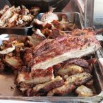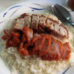 ここのお店のムーデーン(焼豚)とムーコーブ(豚バラ肉をローストしたもの)は他店と比べると切り方に厚みがあり、とてもボリューム感のあるものです。特にムーコーブ(豚バラ肉をローストしたもの)はじっくりとローストされ、中身はジューシーであり、外側はクリスピーな歯ごたえの異なる食感が同時に味わえるもの。日本ではなかなか口に出来ない食品だと思います。