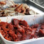 【ムーコーブ・ジーホン ( Moo Krob Ji Hong / ร้านหมูกรอบจี้ฮ้อง )の店頭に並んでいる食材】