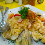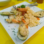 エビやムール貝、牡蠣やイカなどのシーフードをふんだんに使ったシーフードリゾットは一番印象に残ったお料理でした。お米が魚介のエキスをたっぷりと含み、想像以上に美味しいリゾットでした。正直、こんなにおいしいリゾットは初めてというくらいの印象的な一皿でした。( 今回の料理で一番美味しかったと思います。)