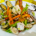 シーフードリゾットと同様に、エビ、イカ、貝類が惜しげも無くたくさん入っていてとても満足なサラダであり、スタッフ一押しのメニュー。プレートから飛び出しそうな位の盛々と盛られたシーフードはかなりお得感があります。この値段でここまでシーフードをふんだんに使うサラダはパトンビーチではあまりお目にかかれません。