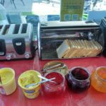 受付終了後は、港のオフィスにて軽食 ( トースト、クッキー、フルーツ牛乳、コーヒーなど ) が振舞われます。