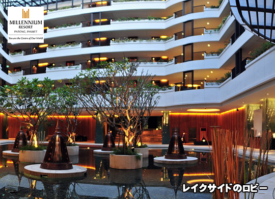 ミレニアムリゾートプーケットは大型ショッピングセンター・ジャングセイロンに併設されている大型リゾートホテルです。清潔感のあるデザインであり、廊下やロビーなどが広々としており、非常に好感が持てるつくりとなっています。ビーチサイド、レイクサイドの2の建物があり、ビーチサイドはスーペリアタイプのお部屋で構成されており、それ以外のお部屋はレイクサイドに集まっています。