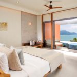 プーケット空港より車で約1時間程度はなれたパンワ岬にあるラグジュアリーホテル・スリパンワ ( Sri Panwa )。スイートタイプのお部屋でも70㎡もあるゆとりのあるレイアウト。ベッドの眼前には景色がタップリと楽しめるよう、床から天井までガラスが張られており、ここからの景色は南国のリゾートをタップリと味わうことが出来るでしょう。また、お部屋にはプライベートのインフィニティプールもあり、カップルや女性のお客様にはたまらないリゾート空間を醸し出しております。