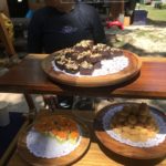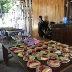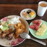 シュノーケリングを楽しんだ後、11:15頃にロック島へ上陸し、ランチタイムです。ビュッフェ形式のランチですが、食事のメニューは少なく鶏肉のカレー、野菜炒め、鶏肉のから揚げ、白飯のみ。他にスイカ&パイナップルやスイーツ ( プチケーキ、クッキー、ミニシューなど)も用意されていました。他にコーラなどの各種ソフトドリンクも用意されていました。(勿論、無料です。)
