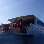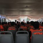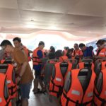 08:40頃にスタッフよりパワーカタマランへ乗船の指示があり、マイトン島へ向け出発しました。 ( ボートへ乗船のしている間はスタッフよりライフジャケット着用の指示あり。)