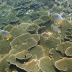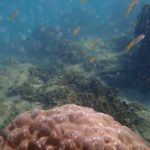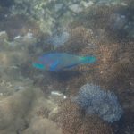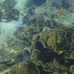 おおよそ20分程度経過したのち、マイトン島のシュノーケリングポイントに到着します。(09:00頃)ここでシュノーケリングを40分ほど楽しみます。海の中へ潜ると、透明度は思ったほどではなかったのですが、南国のトロピカルな魚やサンゴ礁を間近で見ることができました。
