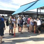 港にて到着後に受付終了後にスタッフからリストバンドを受け取ります。このリストバンドはツアー参加者がどのボートに属しているか判別するための物であり、ツアー参加の際は必ず装着してください。(当日は数台のボートで大勢のツアー客が参加しています。)