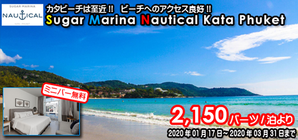 カタビーチのお手軽ホテル・シュガー・マリーナ・ノーティカル・カタ・プーケットの2020年01月17日からのプロモーションをご紹介します。