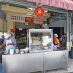 私が立ち寄った時間は昼前の11:15頃とそれほど忙しく無い時間でしたが、ランチタイムがスタートしたのでしょうか? お店正面左側のラーメンの調理場にて、可愛らしい白い帽子をかぶった年配の女性スタッフの方たちが、いそいそとタイラーメンの調理に励んでいました。また、右側はローカルレストランでよく見かけるサテー(ローカル串焼き) の焼き場があり、タイらしく笑顔を絶やさず、同様に忙しくしていました。