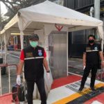 入り口には消毒アルコールが噴霧し、全身消毒されるゲートが設置され、新型コロナウィルス対策が施されているのがわかります。