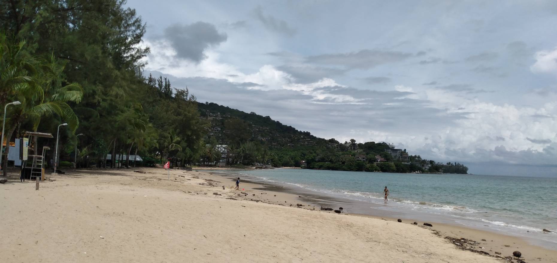 現在のプーケットは雨季のため、ビーチへの波が荒く基本的には遊泳禁止であり、カマラビーチは昨日ご紹介したナイハーンビーチと比べると人影は更に少なく、加えてビーチの波打ち際にある漂着物が目立ちました。