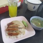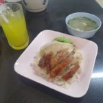 カオマンガイ・チキンライスで人気のバイレイへ久しぶりに足を運び、通常の鶏肉とガイヤーン(鶏肉の炭火焼き)のダブルを載せたものをオーダーしました。(写真のものは大盛・70バーツです。)