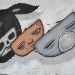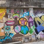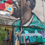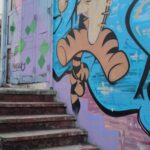 に大きなウォールアートが描かれています。