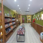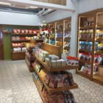 店内を入ると右手にスタッフが待機しているカウンターがあり、その向いが丸テーブルが置いてある飲食コーナー。その奥はお土産が飾られているのですが、多くの商品はオールドタウンの中国・ポルトガル様式(シノ・ポルトギース・スタイル)になぞらえたボックスに入っており、これらの商品を見ているだけでもオールドタウンを散策しているような気分になれます。