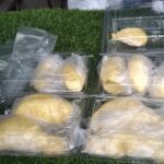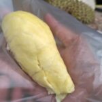 山積みにされた中の気に入ったドリアンを見つけ、お店の人に大きなナタで切って、中身を取り出してもらいます。すぐ食べても良いのですが、冷蔵庫や冷凍庫などで冷やして食べたほうがより美味しくなるので試してみてください。(場所によっては既に中身を取り出したものを陳列しています。)