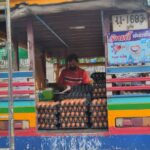 多分、ソンテウなどの人の移動で使われていた車を再利用しているものだと思いますが、荷台に沢山の生卵を載せて移動しながら売り歩くというスタイル。1シート・生卵が30個にて120バーツ(日本円にて約420円)。