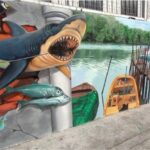 観光エリアとは異なる、地元の人たちが集まるこの運動場の壁に地元の人たちが描いたウォールアートがあります。