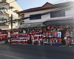 クリスマスが近くなるとサイナムエン通りのバーガール用の洋服を販売しているブティックが御覧のように一気にクリスマスカラーに変わります。(多分明日までかな?) バーガールたちはこのような場所で洋服を購入し、バングラ通りやその
