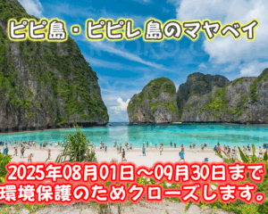 こんにちわ プーケット旅行センターです。現在、マヤベイへの上陸が可能ですが、以下期間は自然環境保護のためクローズします。 2025年08月01日~09月30日 マヤベイへの上陸を希望される方は7月31日まで