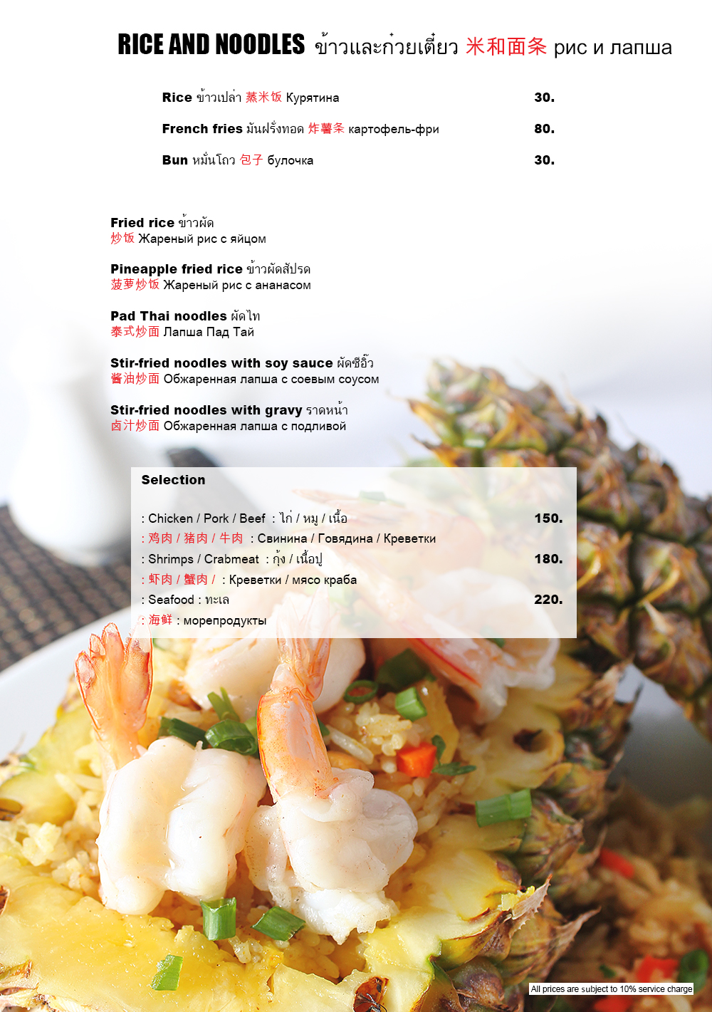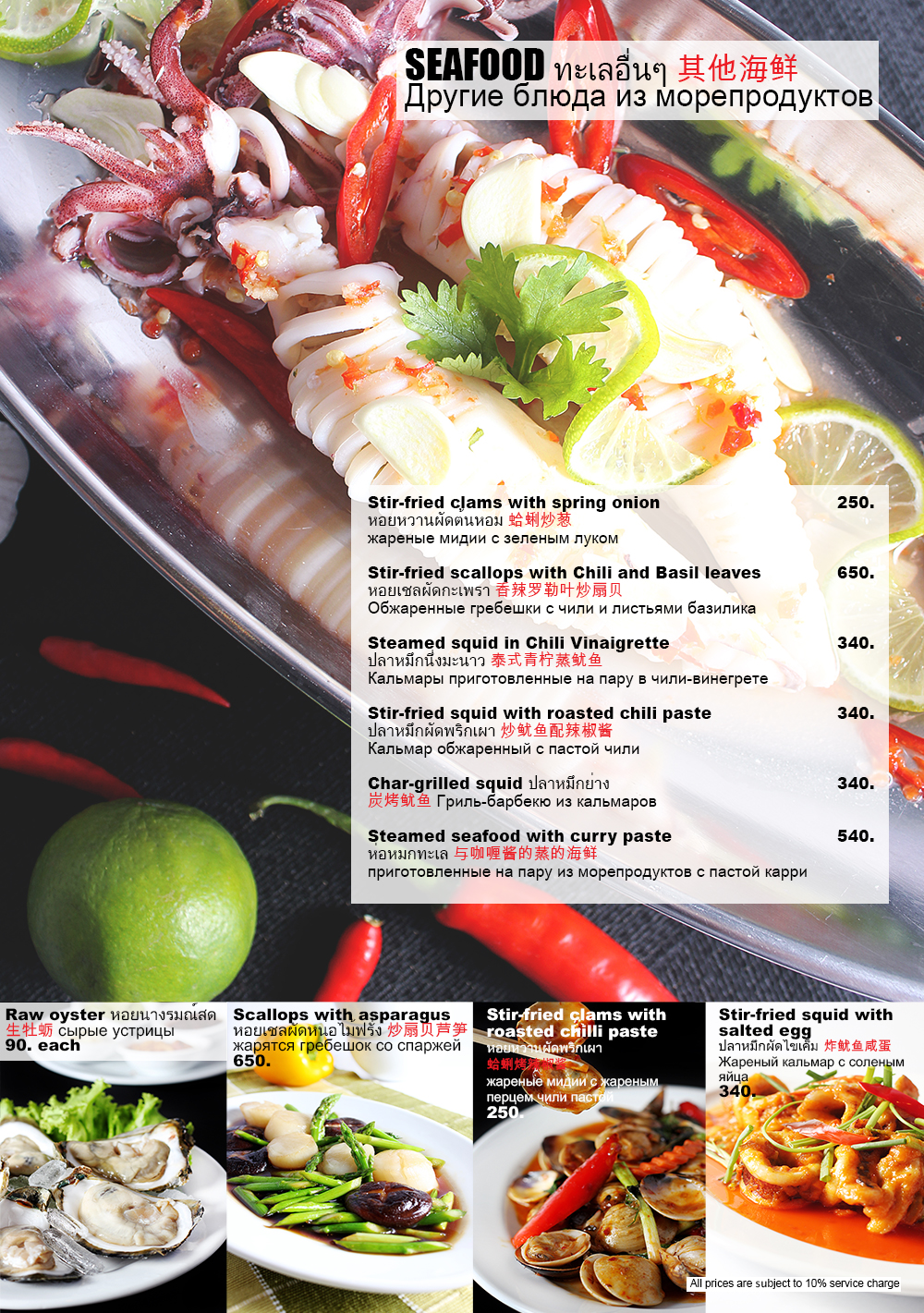 ここはタイの近海やプーケットで取れたシーフードが楽しめるシーフードレストランであり、タイスタイルはもとより中華スタイルの料理も楽しめるシーフードレストランです。そのため、パトンビーチの主だったシーフードレストランでは味わえないチリクラブ(シンガポール料理)が楽しめます。