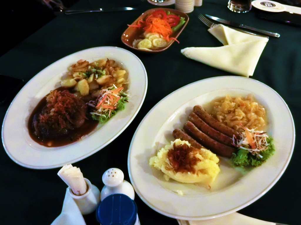 アルコール類はビールやドイツワインやウィスキー、カクテルなどの様々なものが楽しめますが、やはりドイツビールがお勧めでしょう。お店で提供されるビールはバイエルン州立ホフブロイ・ミュンヘン醸造所の本場ビールであり、ホフブロイ ヘーフェ ヴァイツェン(白ビール)、ホフブロイ シュヴァルツ ヴァイスビア(黒ビール)の生ビールが楽しめます。ドイツビールはのど越しが強いエビスビールのようなイメージがあったのですが、どちらともフルーティであり口当たりが爽やかなテイストが楽しめる物であり、ビール好きにはたまらない一品でしょう。ソーセージなどの本格的なドイツ料理も楽しめます。