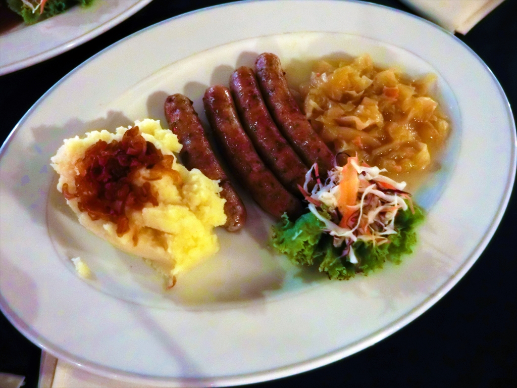 - ニュンベルクソーセージ,ザワークラウト&マッシュポテトのプレート